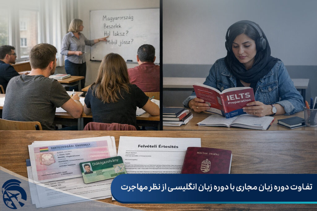 تفاوت دوره زبان مجاری با دوره زبان انگلیسی از نظر مهاجرت، بیش تر به هدف نهایی متقاضی و نوع اقامتی که در آینده دنبال می ‌کند بر می ‌گردد. هر دو مسیر می ‌توانند منجر به دریافت ویزای تحصیلی مجارستان شوند اما کارکرد مهاجرتی آن ‌ها یکسان نیست.