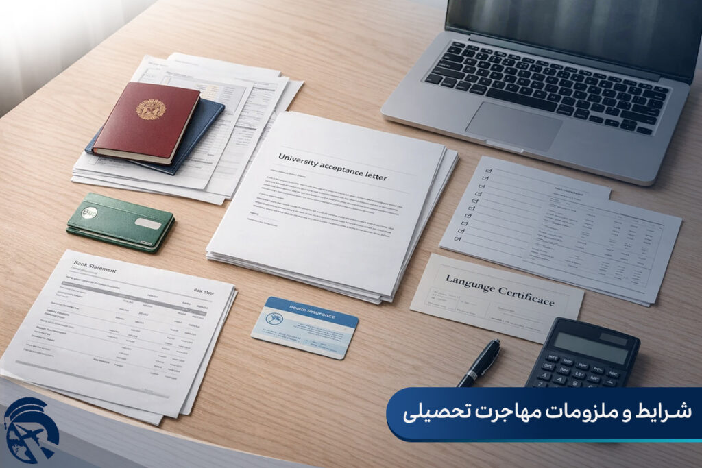 نخستین و مهم ‌ترین شرط مهاجرت تحصیلی، دریافت پذیرش از یک مؤسسه آموزشی معتبر در کشور مقصد است. برای این منظور، ارائه مدارک تحصیلی قبلی به همراه ریز نمرات رسمی، ترجمه ‌شده و تأیید شده ضروری است. اکثر دانشگاه ‌ها همچنین مدرک زبان بین ‌المللی مانند IELTS یا TOEFL (برای دوره‌ های انگلیسی‌زبان) یا مدارک زبان کشور مقصد را الزامی می‌ دانند. داشتن معدل مناسب، رزومه تحصیلی قوی، انگیزه ‌نامه هدفمند و در برخی مقاطع توصیه ‌نامه اساتید، شانس پذیرش را به‌ طور قابل توجهی افزایش می ‌دهد.